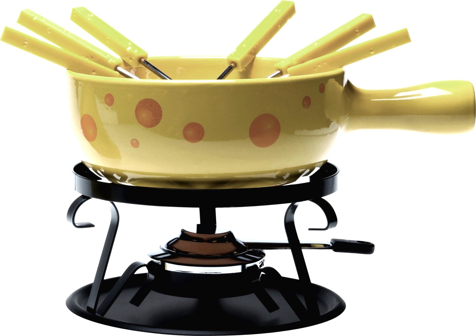 9-teiliges Fondueset- 1 Caquelon aus Tonerde