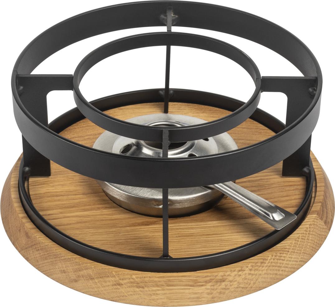 Ein Abend voller Genuss beginnt mit der richtigen Basis: Das stilvolle Rechaud Eiche mit hochwertigem Eichenholz-Untersetzer schafft eine Atmosphäre, die zum Verweilen einlädt. Vielseitig kombinierbar, setzt es jedes Caquelon in Szene.