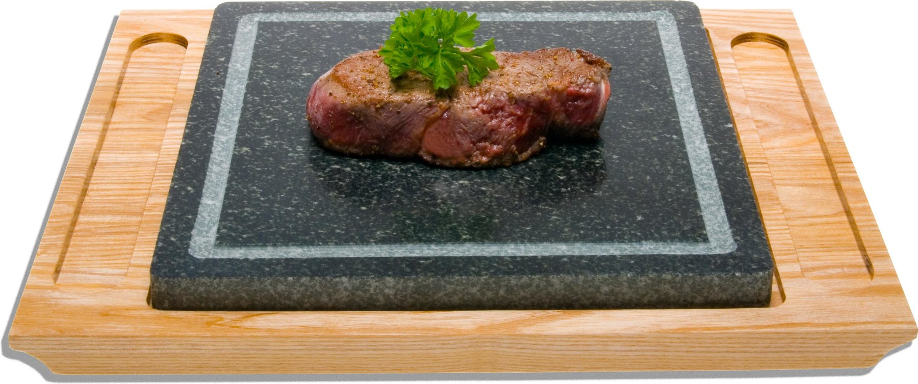 Tischgrill mit extra großem Heißen Stein. Diesen einfach im Ofen aufheizen und dann nach Lust und Laune am Tisch brutzeln!
