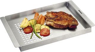 Dank der multifunktionalen Grillschale mit zweigeteilter Fläche, lässt sich Grillgut - sowohl für Fleischliebhaber als auch für Veggie-Freunde - zeitgleich zubereiten. Die Grillplatte ist geeignet für Holzkohle-, Gas- und Elektrogrill und ein Muss bei Ihrer nächsten Gartenparty. Die gelochte Seite sorgt einerseits für das Abtropfen überschüssigen Fettes und andererseits für eine direkte Hitze und leckere Röstaromen. Auf der geschlossenen Seite können Sie z.B. Burger-Patties ideal mit Käse überbacken, Spiegeleier braten und generell Gargut tropffrei zubereiten. Die Handhabung ist durch die seitlichen Griffe besonders einfach. Der Grillrost bleibt weitestgehend sauber und nach getaner Arbeit lässt sich die Schale einfach in der Spülmaschine reinigen.