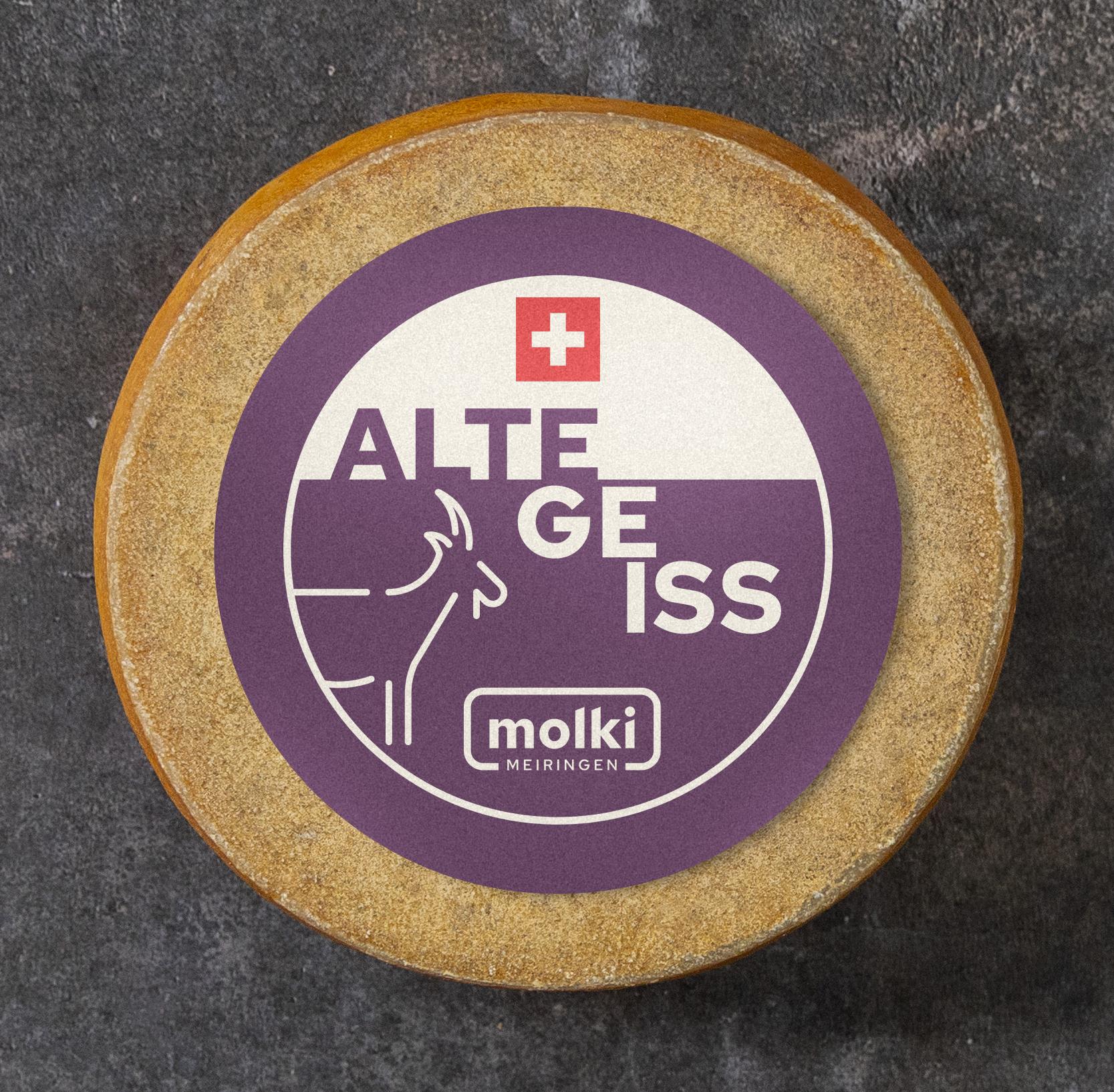 Die „Alte Geiss“ ist ein Halbhartkäse aus pasteurisierter Ziegenmilch. Er ist cremig glatt mit einem herben Geschmack und ist besonders fein zu einem Glas Weißwein oder frischem Brot.