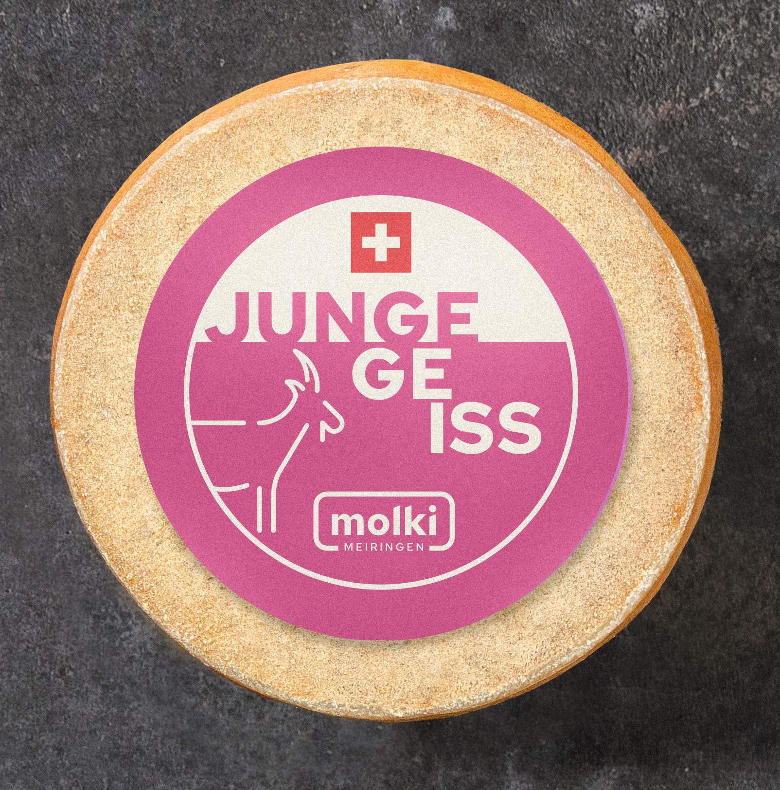 Die „Junge Geiss“ ist ein Halbhartkäse aus pasteurisierter Ziegenmilch. Er ist cremig glatt mit einem milden Geschmack und ist besonders fein zu einem Glas Weißwein oder frischem Brot.
