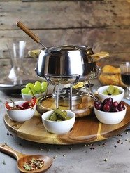 Fondue ist hierbei ideal. Sie können zwischen Käsefondue, Fett- / Fleischfondue, Brühfondue und als Nachtisch Schokoladenfondue wählen.