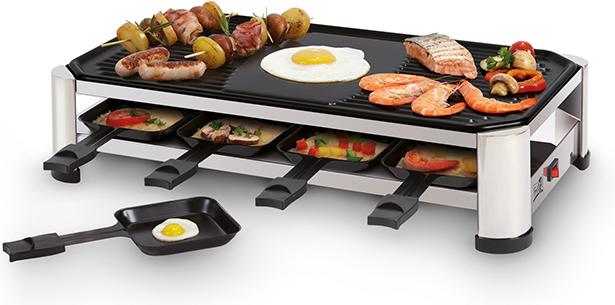 Wenn sie eine gemütliche Feier haben möchten ohne dafür lange in der Küche zu stehen dann ist dieser Grill genau das richtige. Sie schneiden Fleisch, Fisch und/oder Meeresfrüchte, stellen einige kalte Gemüse und Soßen bereit und dann können Sie genießen. Sie machen es so kompliziert wie Sie wollen. Außerdem können Sie die Raclette-Pfännchen mit herrlichem Käse füllen.