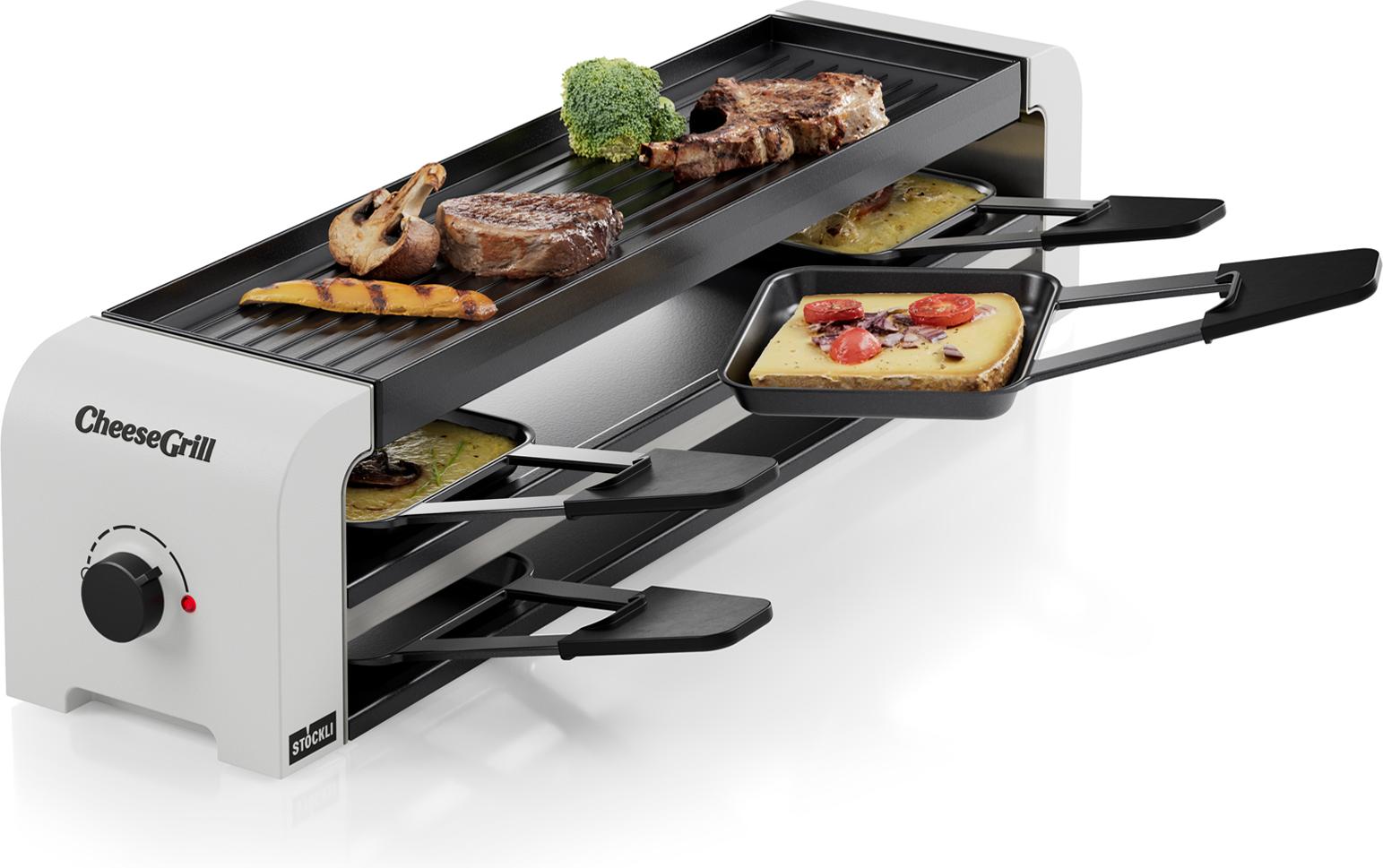 Der mit vier antihaftbeschichteten Stahlblech-Pfännchen und vier Raclettespachteln aus Kunststoff ausgestattete CheeseGrill 4 ein Muss für die Küche. Einfach aufstellen, anschalten und den geselligen Raclette- und Grillabend genießen.