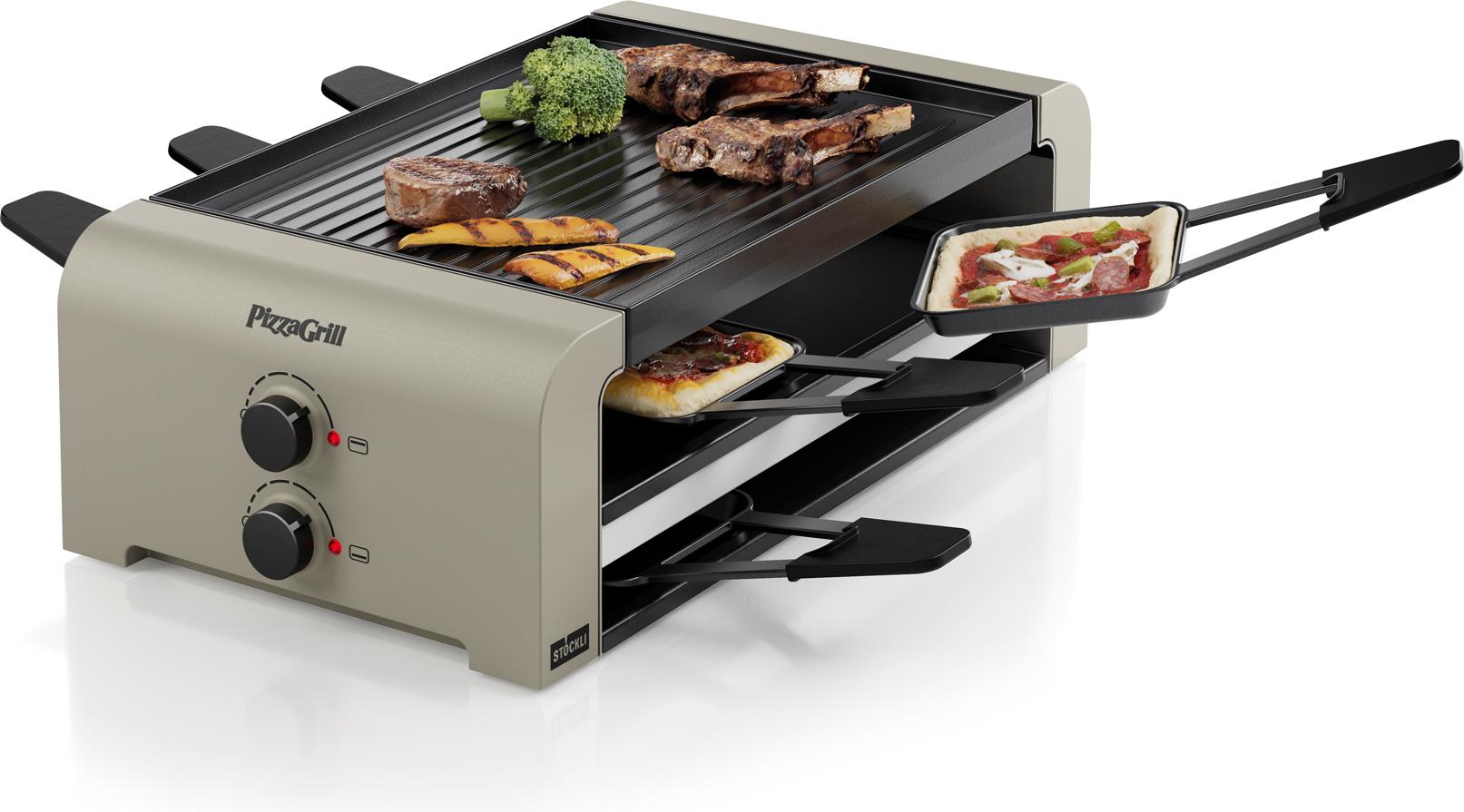 Tischgrill für Pizzas, Raclette und mehr. Mit Ober- und Unterhitze-Reglern und Parkdeck. Für 6 Personen.