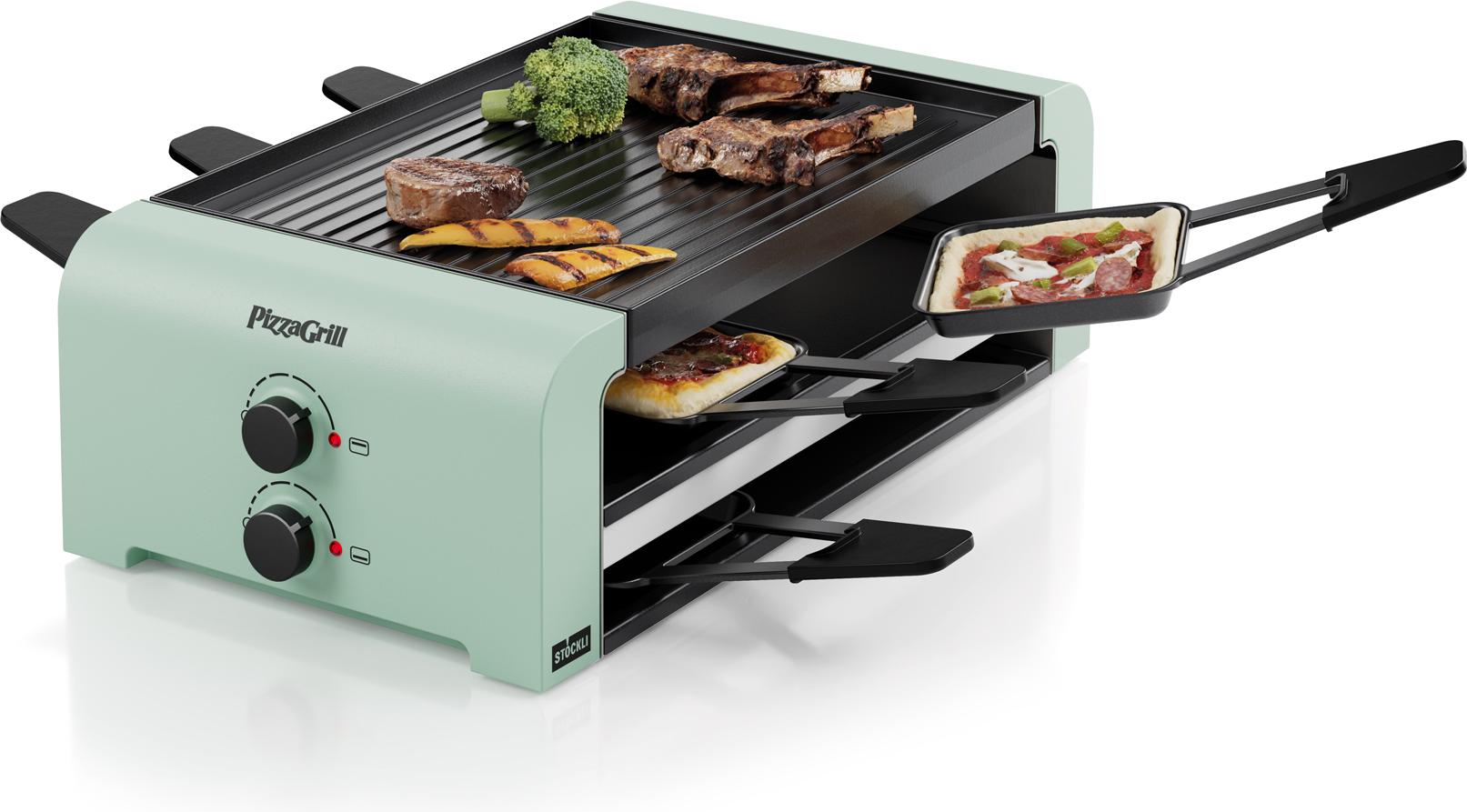 Tischgrill für Pizzas, Raclette und mehr. Mit Ober- und Unterhitze-Reglern und Parkdeck. Für 6 Personen.