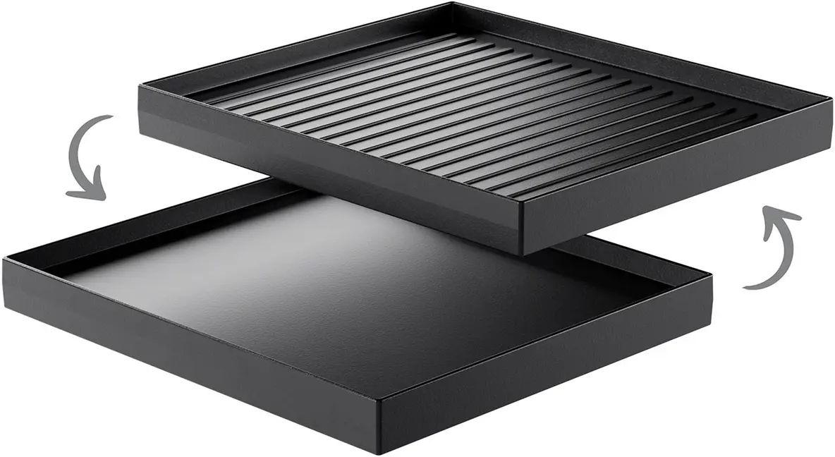 2-in-1 Wendeplatte – Flexibles Grillvergnügen für jeden Geschmack Zwei Grillarten, ein Gerät: Die innovative Wende-Grillplatte vereint klassisches Grillen und Teppanyaki in einem. Je nach Lust und Laune lässt sich die Platte mit einem einfachen Dreh anpassen – für abwechslungsreiche Genussmomente. Sie ist kompatibel mit allen PizzaGrill 4-Modellen und eröffnet zahlreiche Möglichkeiten: Ob saftiges Fleisch, frisches Gemüse oder feine Meeresfrüchte – die Wendeplatte bringt Vielfalt auf den Tisch und macht jede Mahlzeit zu einem kulinarischen Erlebnis.